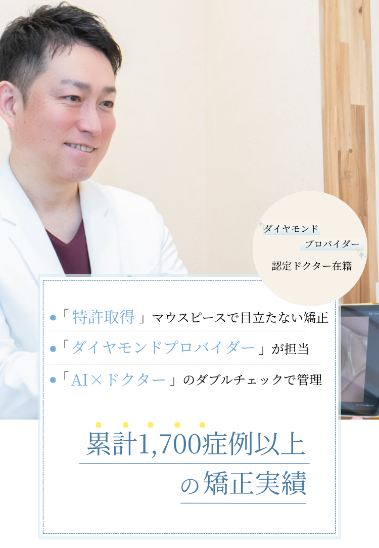 むらつ歯科クリニックには、インビザラインの実績に応じて認定される「ダイヤモンドプロバイダー」の資格を持つドクターが在籍しています。